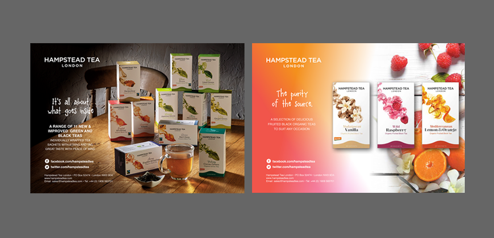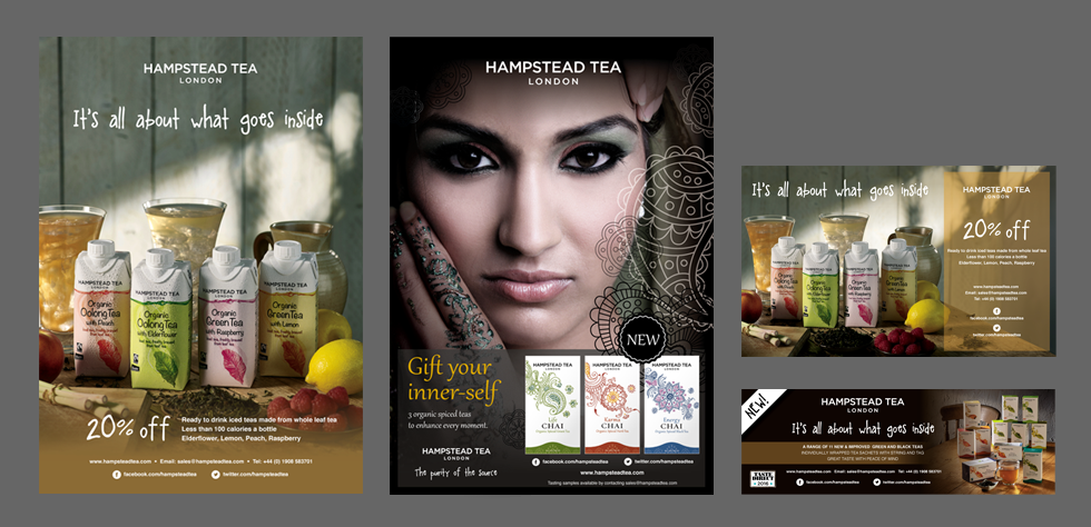 The Hampstead Tea brand is growing and all marketing products are starting to formulate a trademark look for Hampstead Tea, print and digital work all bears a familiar style. Moving into the future Diallög Creative will continue to strengthen the Hampstead Tea brand in order to reach an even greater audience.